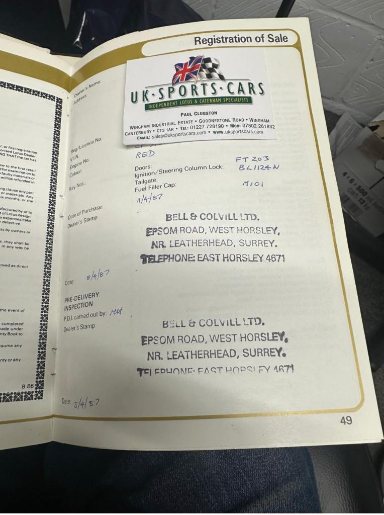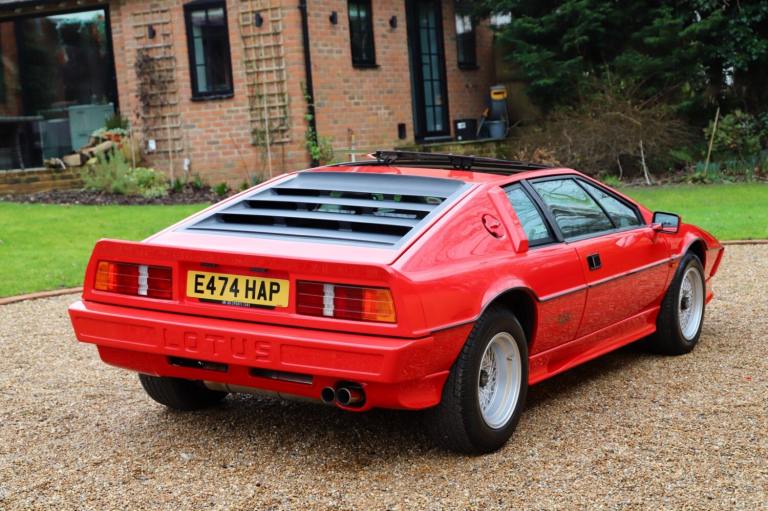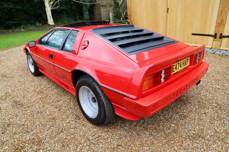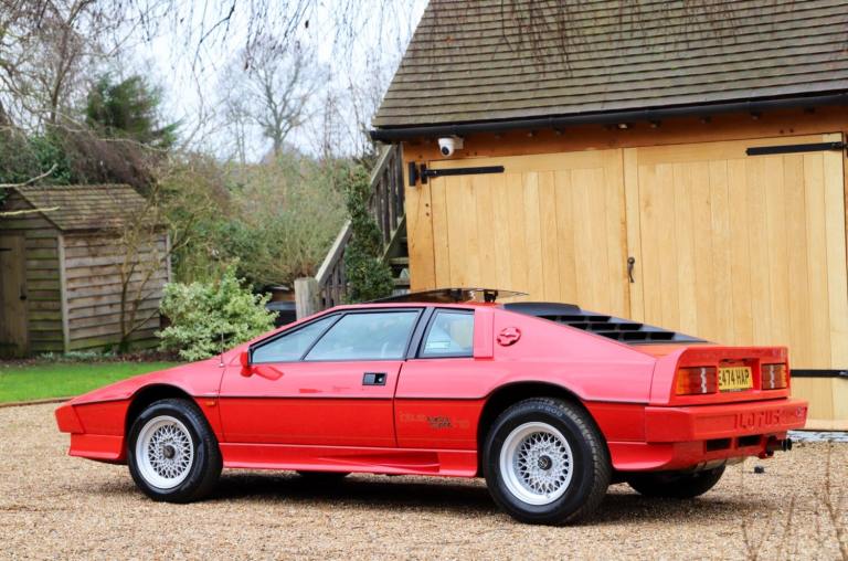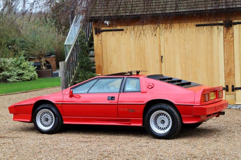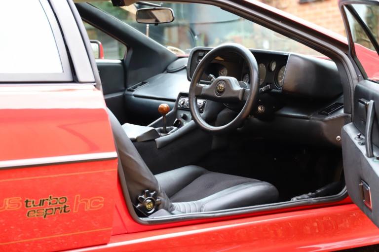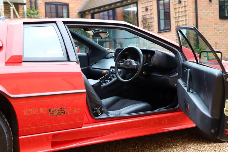 Lotus Esprit Turbo HC, 1987. Last owner 21 years. One of 135 ever built and this is one of the last Giugiaro HC Turbos built before the new shape Peter Stevens restyle. Just 60,500 miles which represents around 1,600 per annum. Factory glass Targa sunroof and air-conditioning. Fantastic Calypso Red with half black leather interior which is in first class condition having had both seats re-foamed (materials £200 each side from Lotus) so they look and feel like new. Renewed headlining in original doeskin brushed nylon material as per original specification all done in 2024. Original Owners Handbook. Full C Service in May 2024 including new water pump, cam-belt and all ancillary belts. New fuel filter. Clutch master and secondary clutch cylinder. Brake master cylinder renewed and much more during the service. We have owned a large percentage of the HC Turbos ever built and this drives as well as any of them. This is a truly wonderful machine which looks incredible from every angle. Spot-on in every department. Absolutely timeless design. Supplied by Bell & Colvill in Surrey. Delivery worldwide.