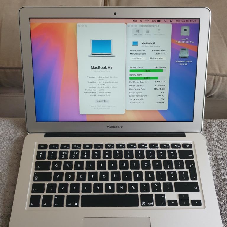 MacBook Air - Excellent Condition, Charger, macOS Sequoia, Windows 10, MS Office