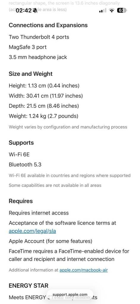 Connectivity: Wi Fi 6E Bluetooth Thunderbolt MagSafe wireless support