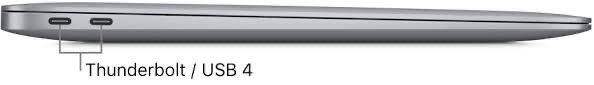 Connectivity: Two Thunderbolt/USB 4 ports, 3.5mm headphone audio jack.
