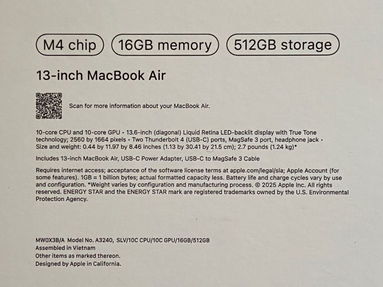 Like new condition MacBook Air M4 (latest version) with original Apple Store purchase receipt.