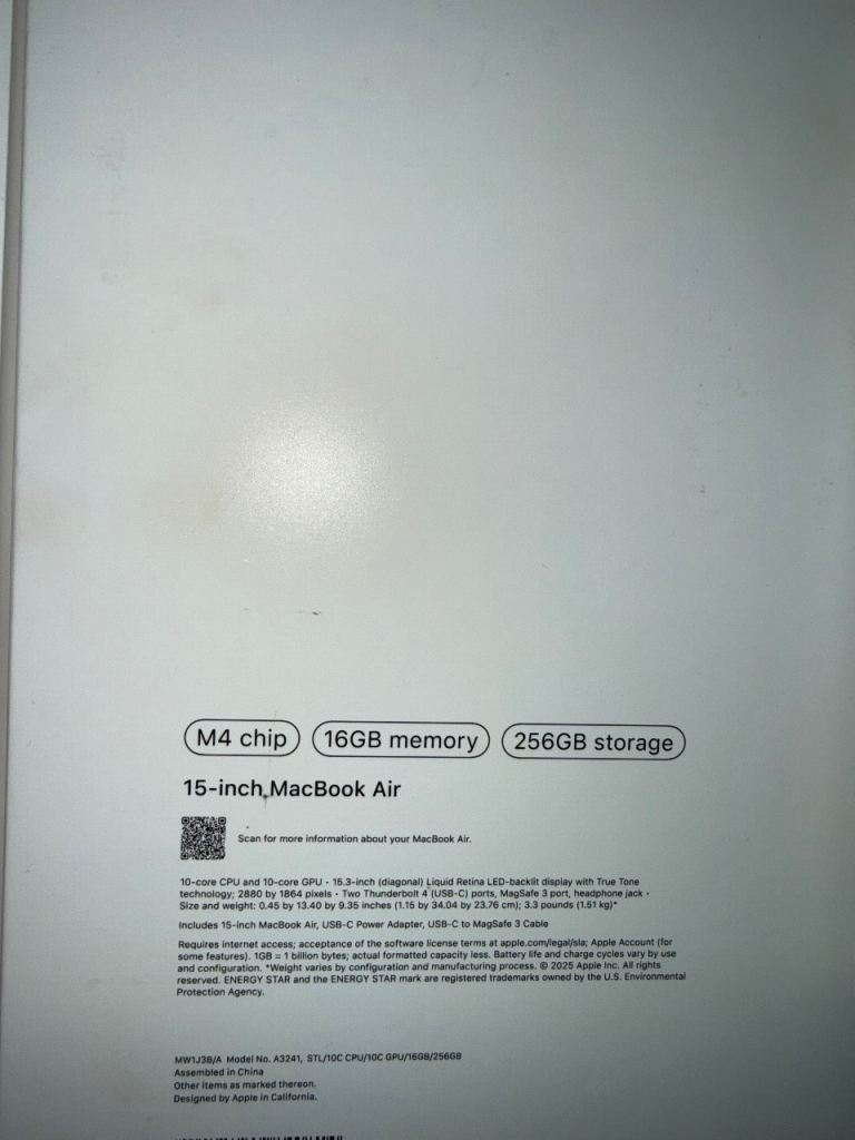 Apple MacBook Air M4-2025. All specs in pics- has a damaged screen-all tested externally with output to monitor. In brand new condition - Still under warranty with Apple till September 2026. Comes with original box & charger. Has no iCloud accounts/password/mdm. Sold as seen- will be collected from my premises