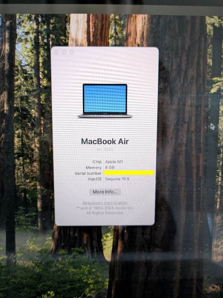 Macbook Air 13 inch M1 256 gb SSD 8gb memory