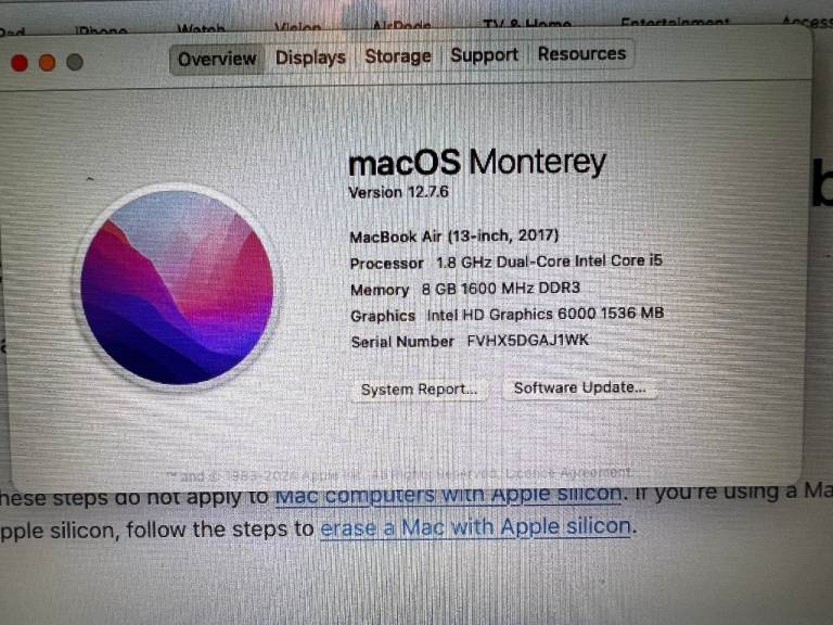Here is my trusty Macbook Air. 2017 model A1466 running Monterey. Newish battery - only 124 cycles. Comes with original Apple charger and box. Everthing works, erased with a re-install of the OS ready to personalise. Collect only.