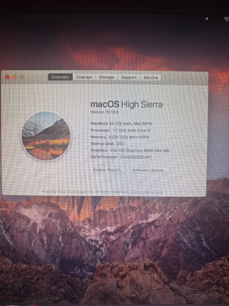 MacBook Air A1369, silver. Running MacOS High Sierra 10.13.6.