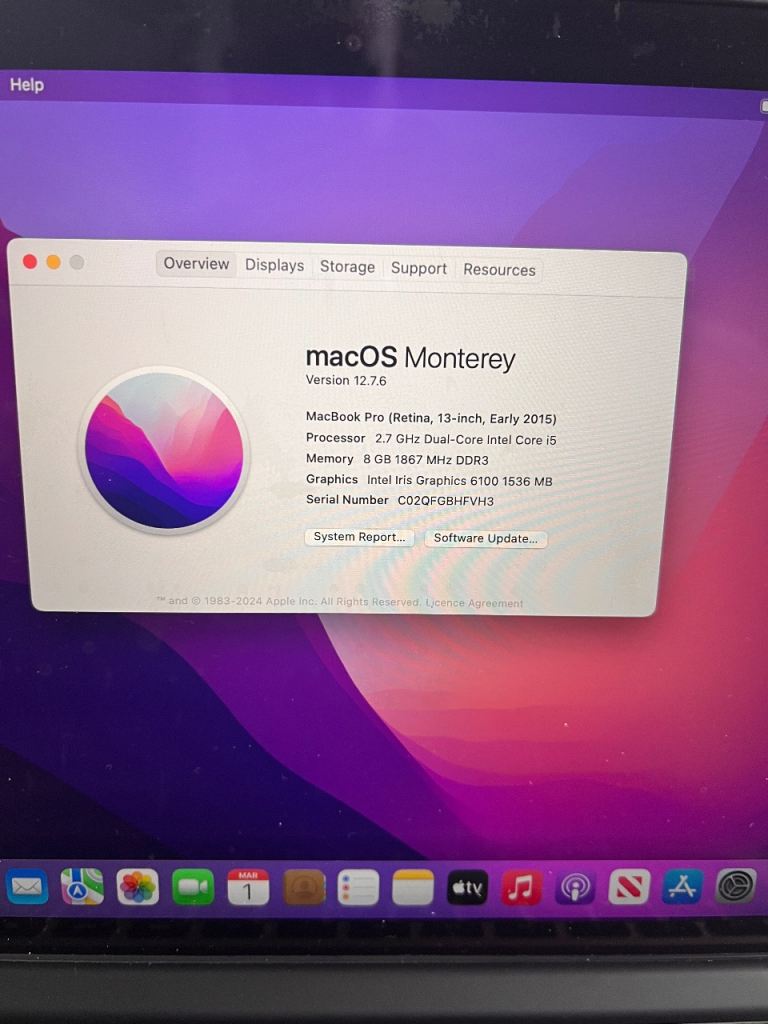 MacBook Pro 13” Retina 2015 | i5 2.7GHz | 8GB RAM | 128GB SSD | 60 Cycles | Excellent