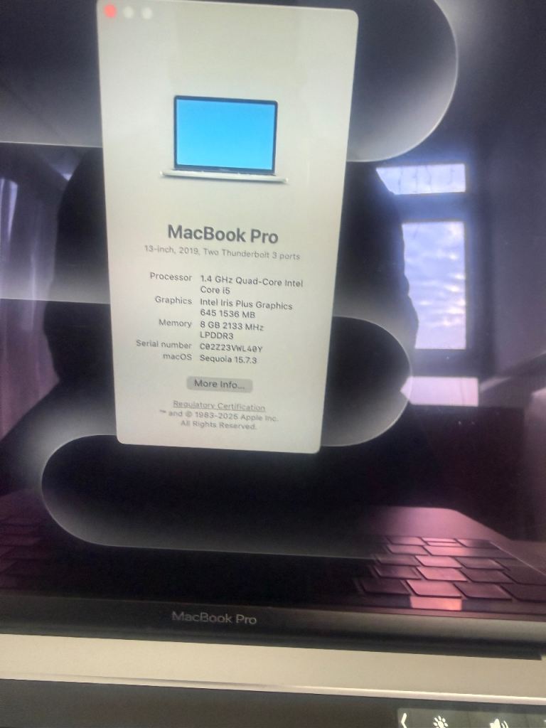 Hi here I have for sale MacBook Pro 13 “ Touch Bar late 2019 fully wiped and ready for the new owner condition is good no scratches or dents just the age related marks any questions feel free to contact. Thanks for looking