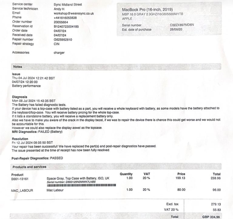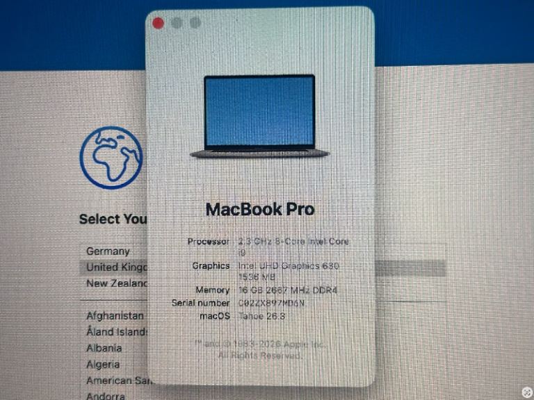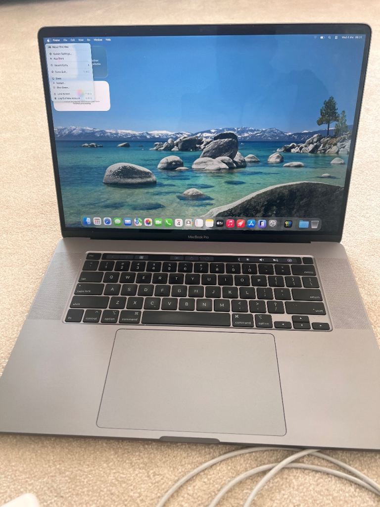 This great MacBook Pro 16" had a new battery, keyboard and top case fitted in July 2024 at a cost of £335 (see receipt). It runs the very latest version of Tahoe OS and is still a very powerful machine with a solid 1TB hard drive.