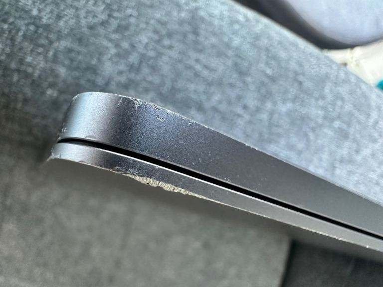 There is also a crack along the very bottom of the screen across the MacBook logo (see pictures). This has been there for years and has not expanded. It does not impact the actual screen (the entire visible screen area is above this strip).