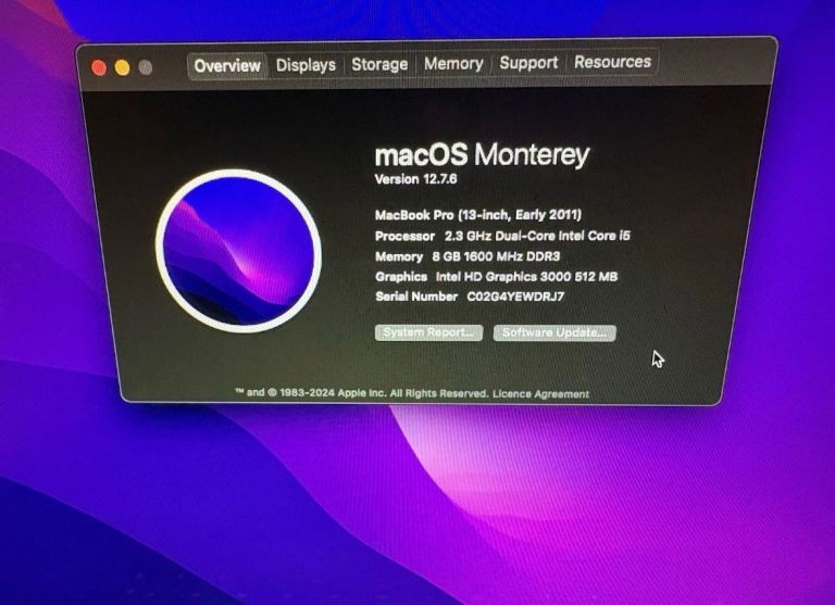 MacBook Pro A1278 Early 2011/13”/ 8gb/120gb SSD Intel Core i5/ PATCHED MONTEREY