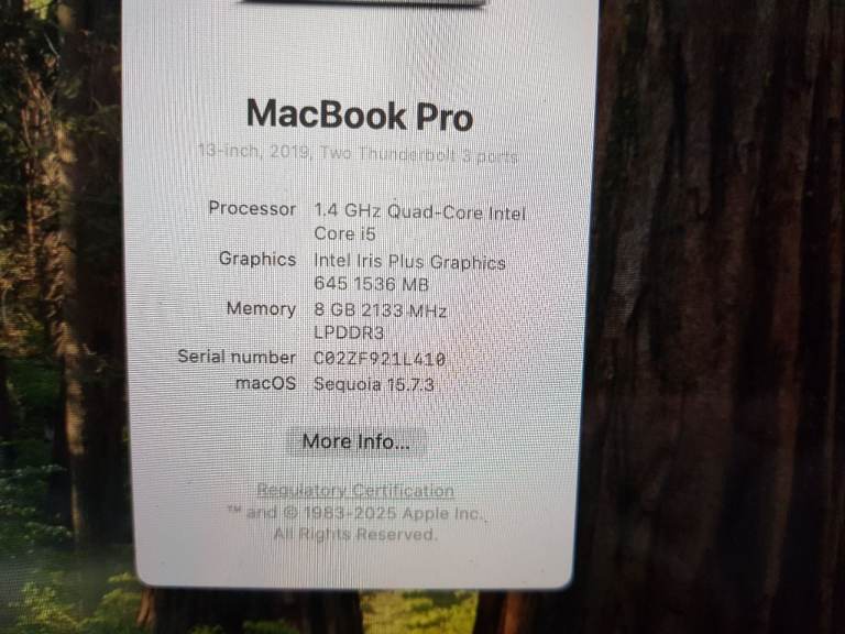 macbook pro a2159 proessor 1.4 ghz quad core intel core i5 3.1ghz 8g memory intel lris plus graphics 645 1536 charger 250 ssd hard drive battery hold a good charge no texing phone only with held number will not be answered no offers pick up only thanks