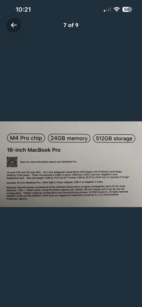 16” MacBook Pro, M4 pro chip.