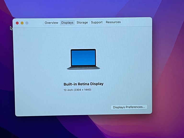 * Dual display and video mirroring: simultaneously supports full native resolution on the built-in display and up to 4096-by-2304 resolution at 60Hz on an external display, both at millions of colors
