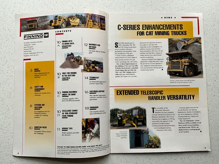 CAT Caterpillar Finning Earthworks Magazine 1999, Mining Trucks, Backhoes, Excavators, Wheel Loader