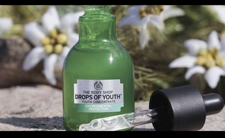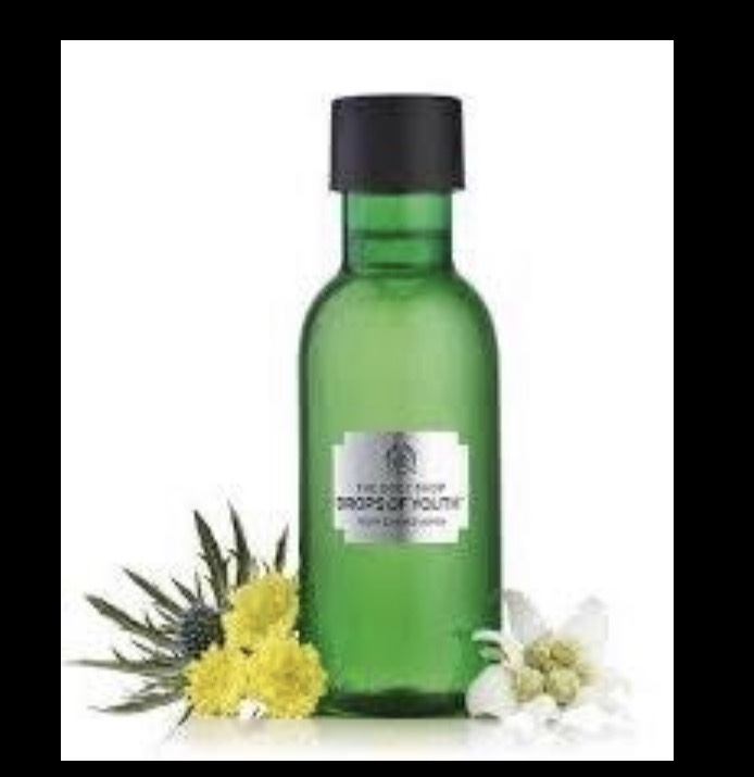 Bodyshop drops of youth gift set containing drops of youth essence and drops of youth concentrate all in a novelty basket and gift wrapped