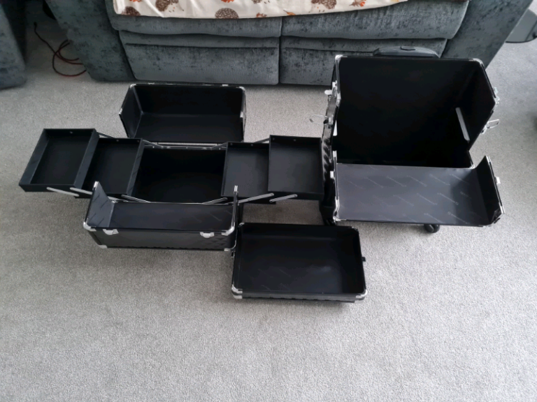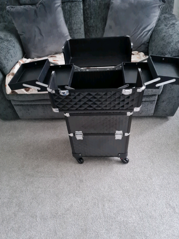 Brand new condition professional SONGMICS make-up case with trolly handle, H76 cms W 37 cms D 24 cms, can be split into smaller compartments if needed with spare lid, was used for college but now no longer required, for any more information pls get in touch, £65.00