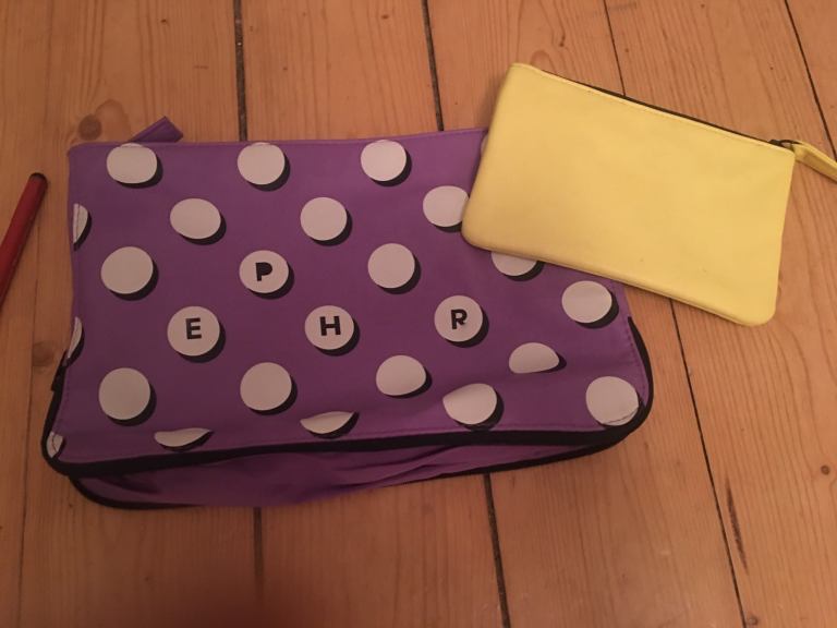 Two Sephora beauty and makeup bags. The larger purple beauty bag has a zip section at the bottom to enable the bag to expand in size. Both bought on holiday in USA.