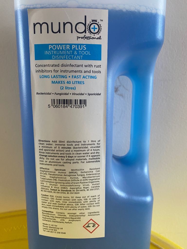 mundo professional POWER PLUS INSTRUMENT & TOOL DISINFECTANT 2L bottle Makes 40L