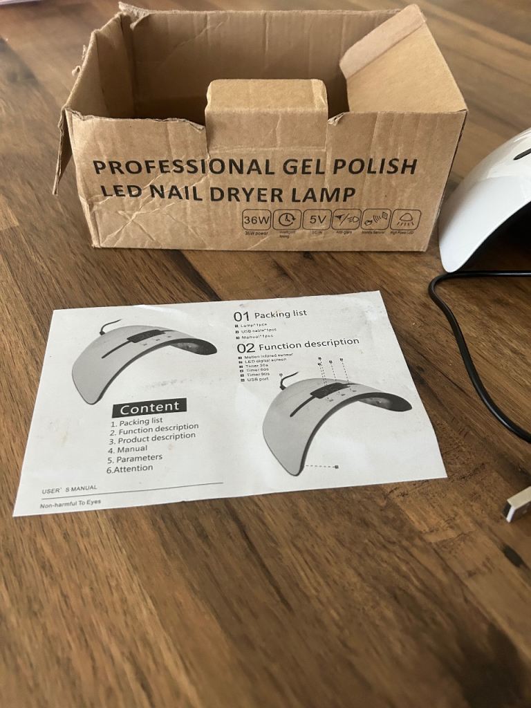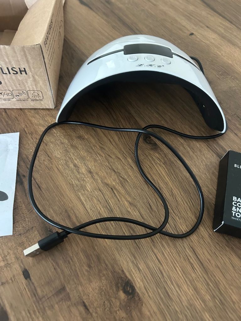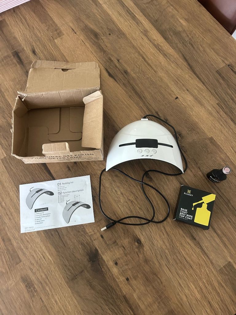 Nail lamp, Base coat, top coat and nail polish part used but still plenty left. Also advertised on other sites