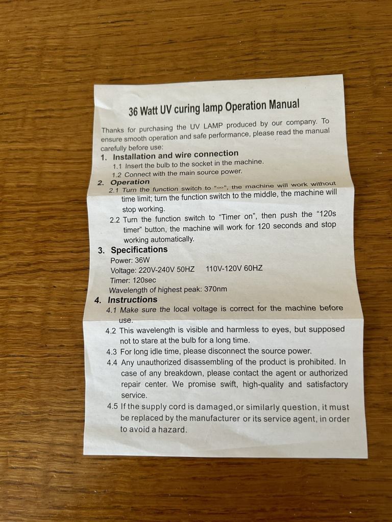 I have a 36watt UV lamp in pink comes withinstructions it is in V.g.c.