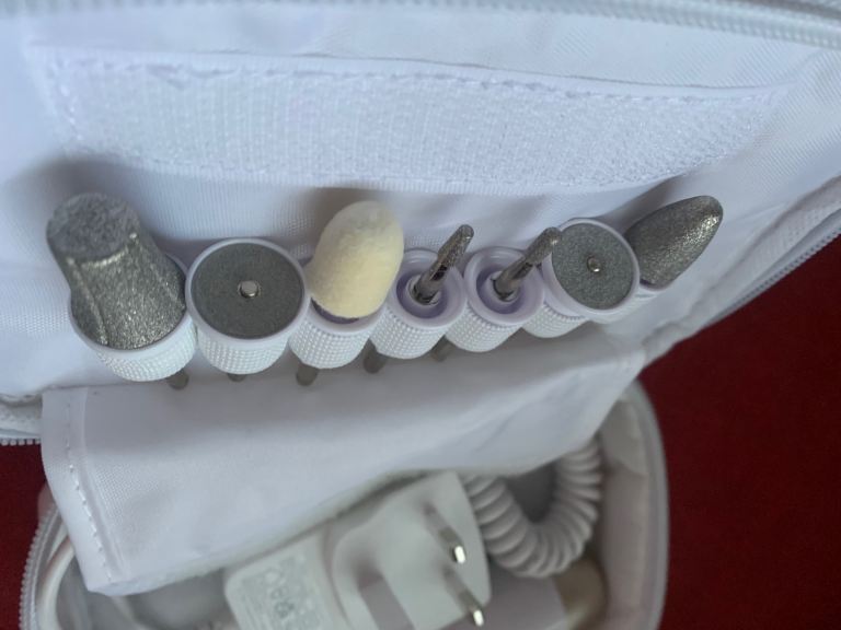 This is a Nail Manicure and Pedicure set with different attachments and a storage bag