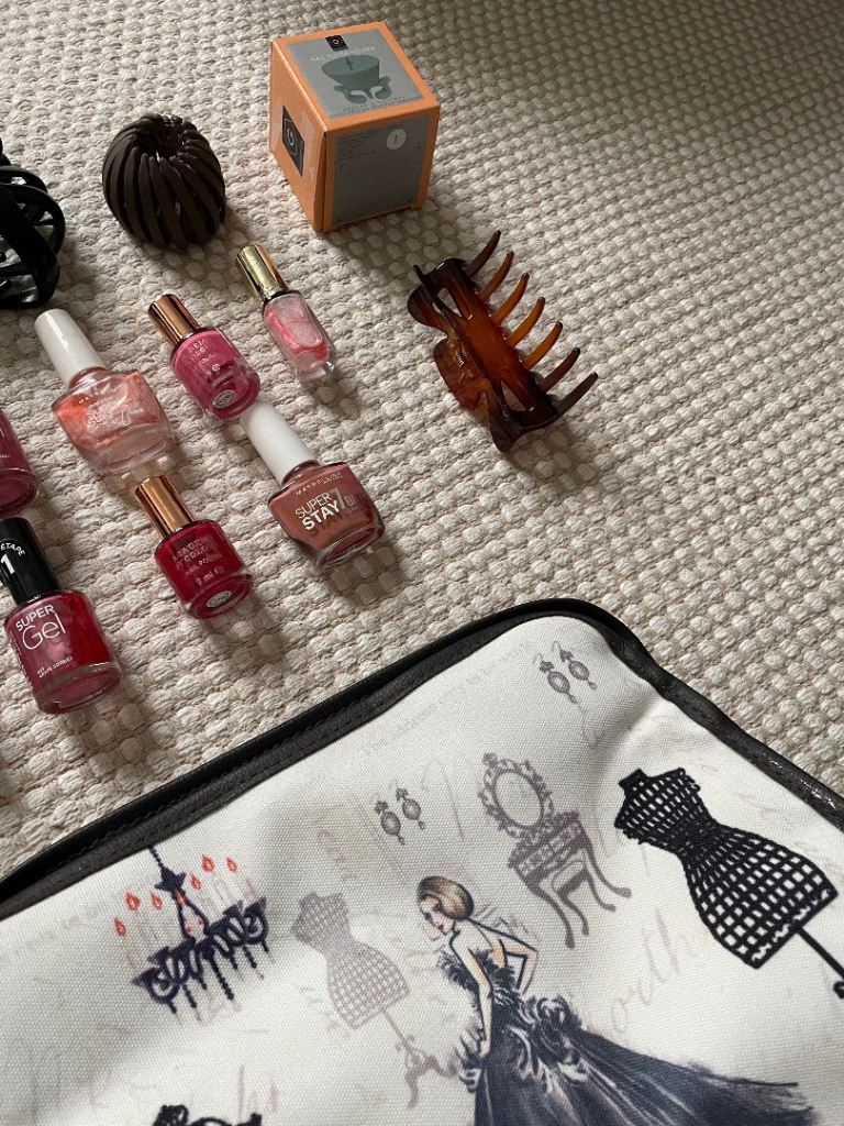 Nail varnish set with bag, hair clips and vanity tray