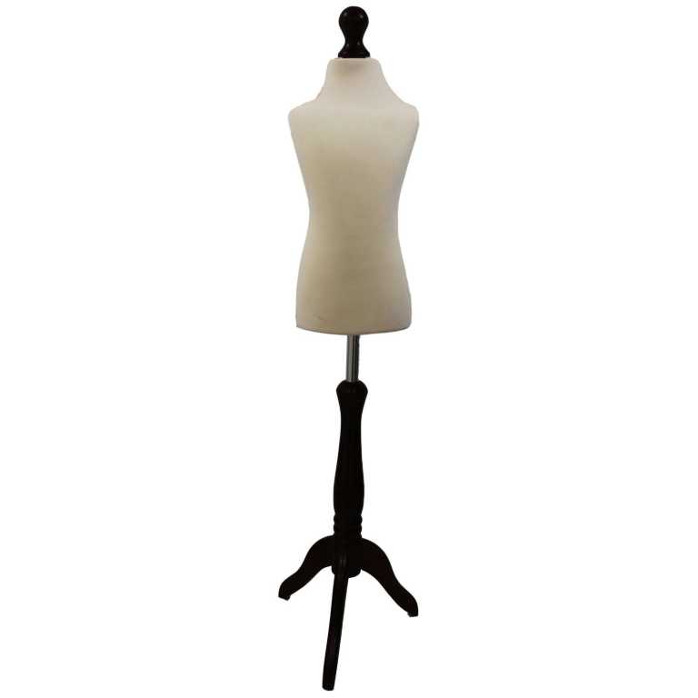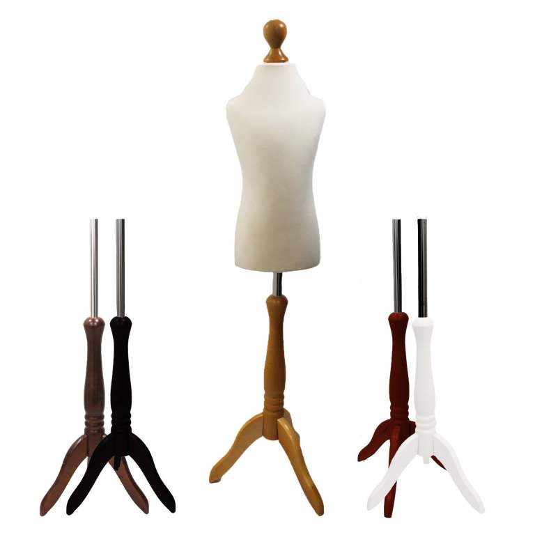 This children's Dressmakers Mannequin is perfectly sized for Age 1-12 Years, featuring a choice of Cream,White and Black polyurethane torso and a wooden Tripod or Round base stand choice of five colours (White, Black, Walnut, Red, and Lightwood). it’s ideal for displaying or designing infant clothing with accuracy and ease.