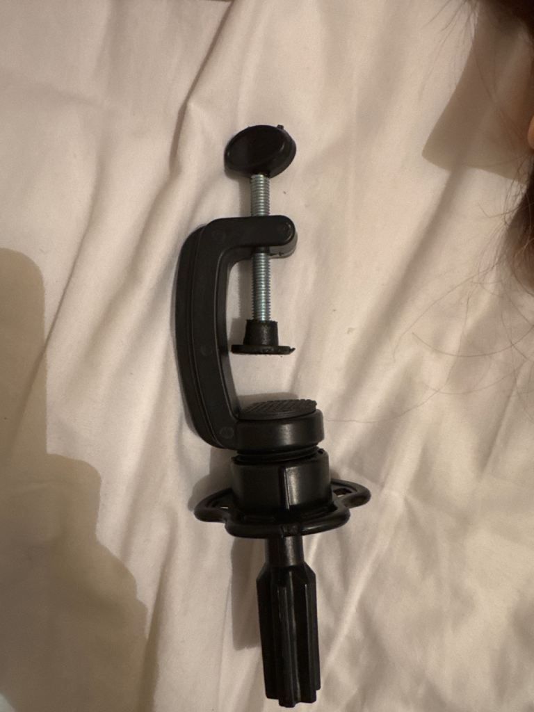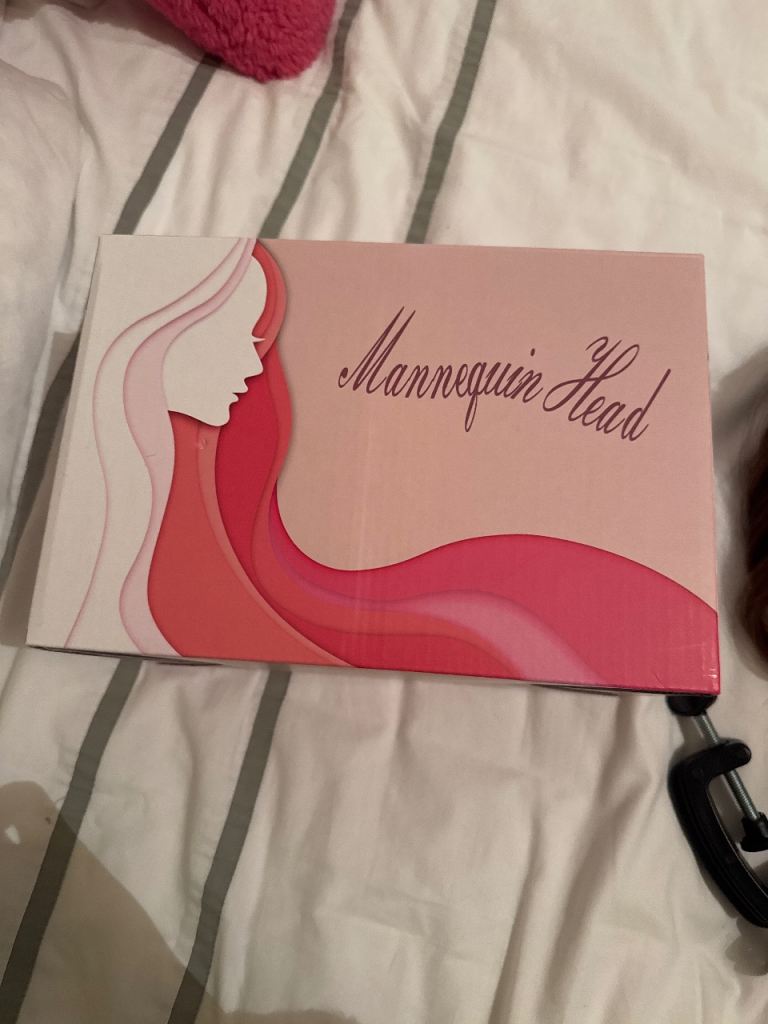 Mannequin head with table clamp and box.