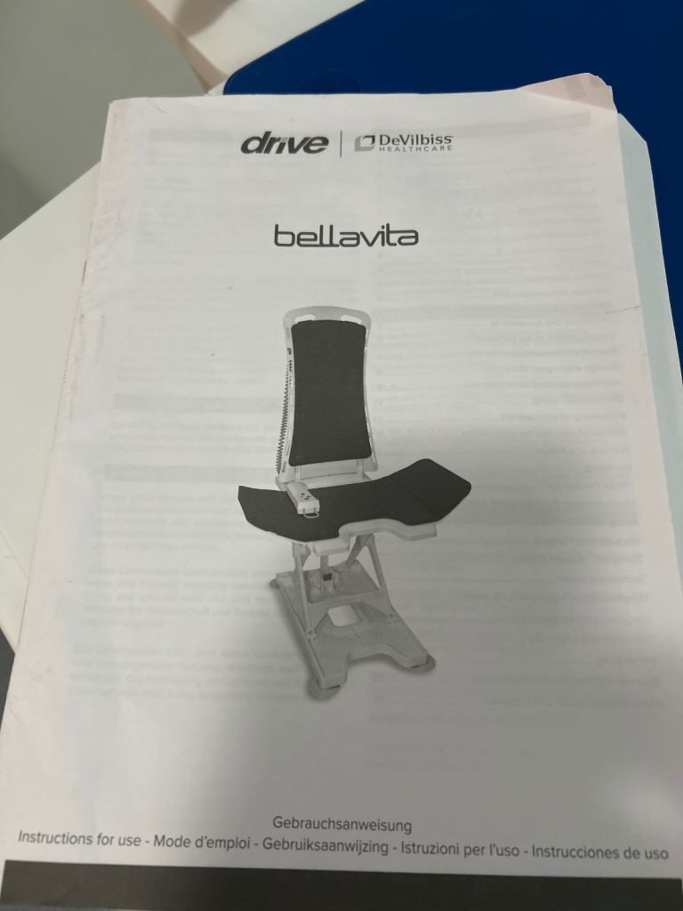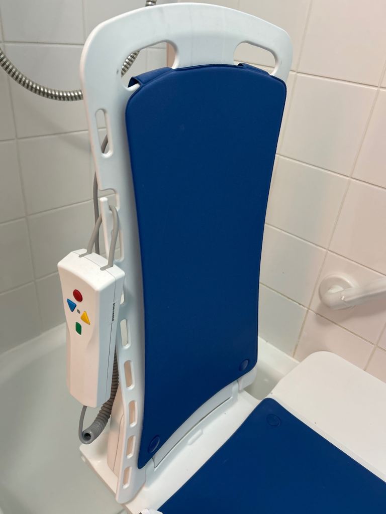 This is a powered bath seat that lifts and lowers into the bath to overcome mobility challenges.