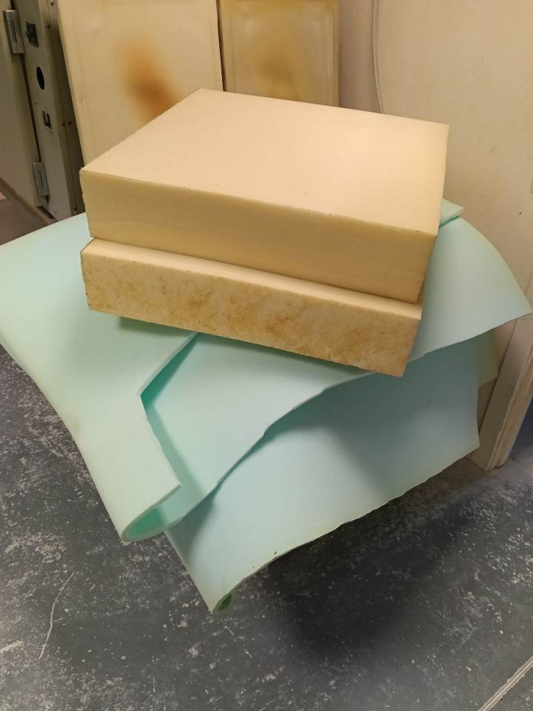 High density upholstery foam 600mm x 600mm x 125mm approx a d low density foam 1.8m x 2.4m x 12 mm.