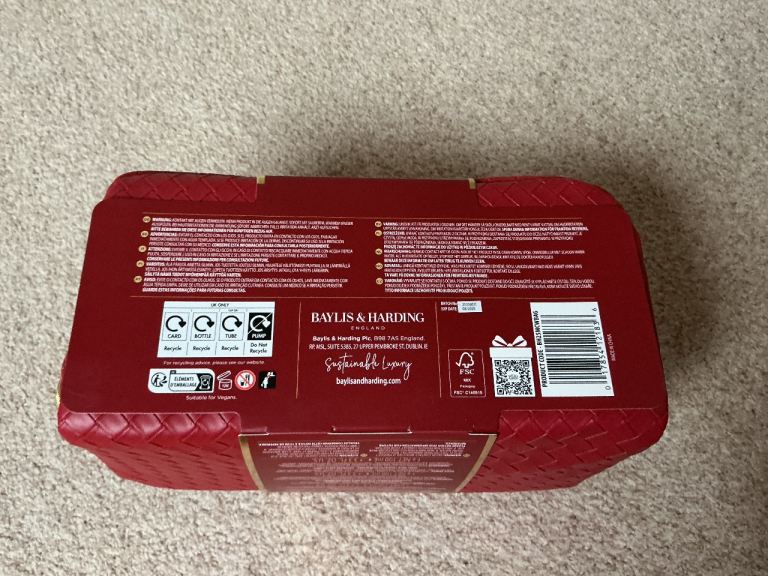 Brand new. Baylis & Harding, wash bag with 100 ml each of Midnight cherry body wash, hand cream & body sprits spray.