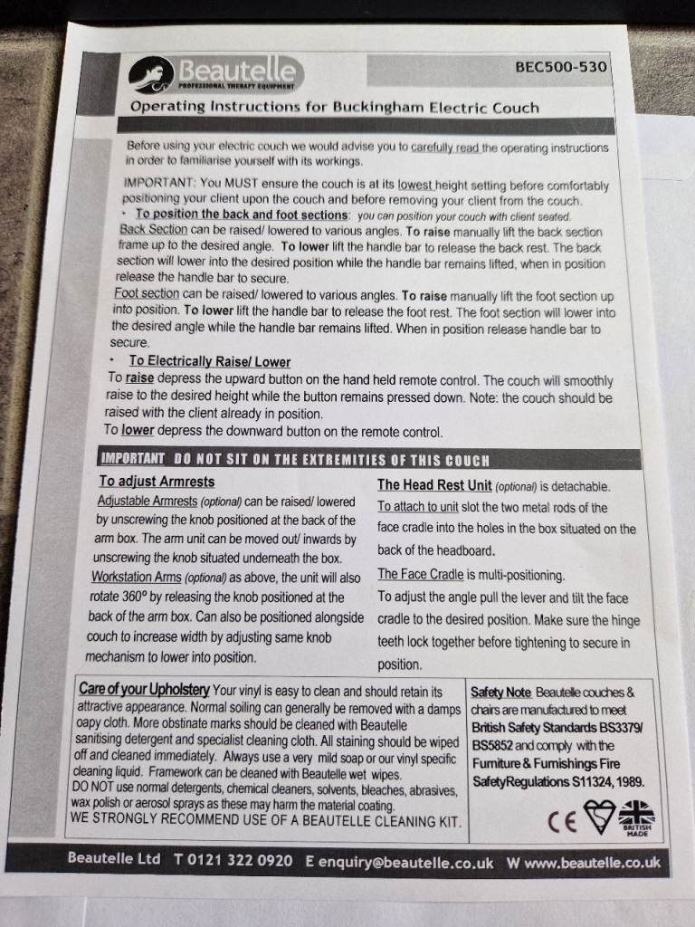 Electric Height-adjustment via (wired) remote-control, mains powered - full working order.