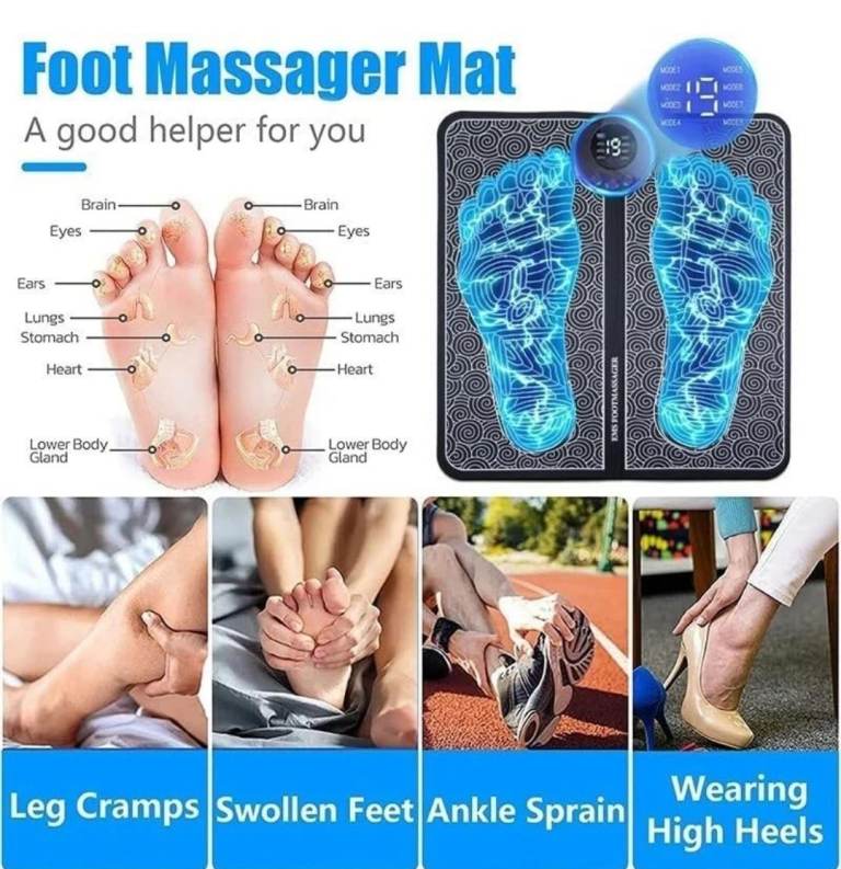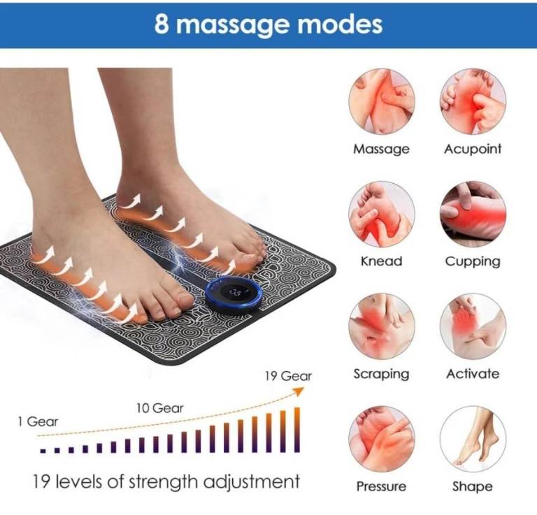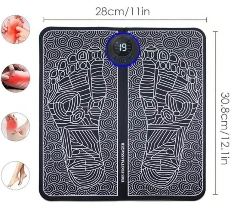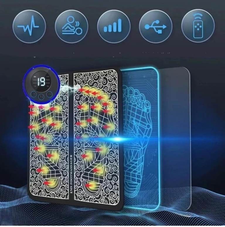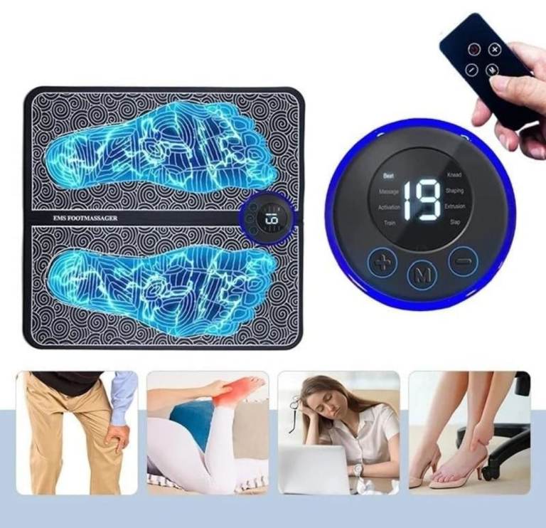 EMS Foot Massager with 19 Intensity Level & 8 Modes, Electric Rechargeable Feet Spa, Remote Control Massager for Foot, Back & Leg Pain Relief, Muscle Relaxation, Improved Circulation with LCD Display