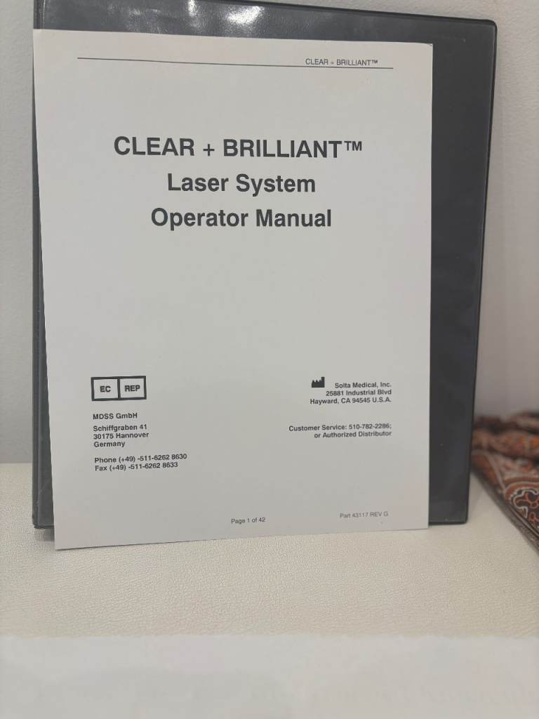 Clear + Brilliant fractional non-ablative laser system, purchased in 2013 and privately owned. The 1440 nm hand-piece was replaced with a new unit in 2018, extending clinical usability and value.