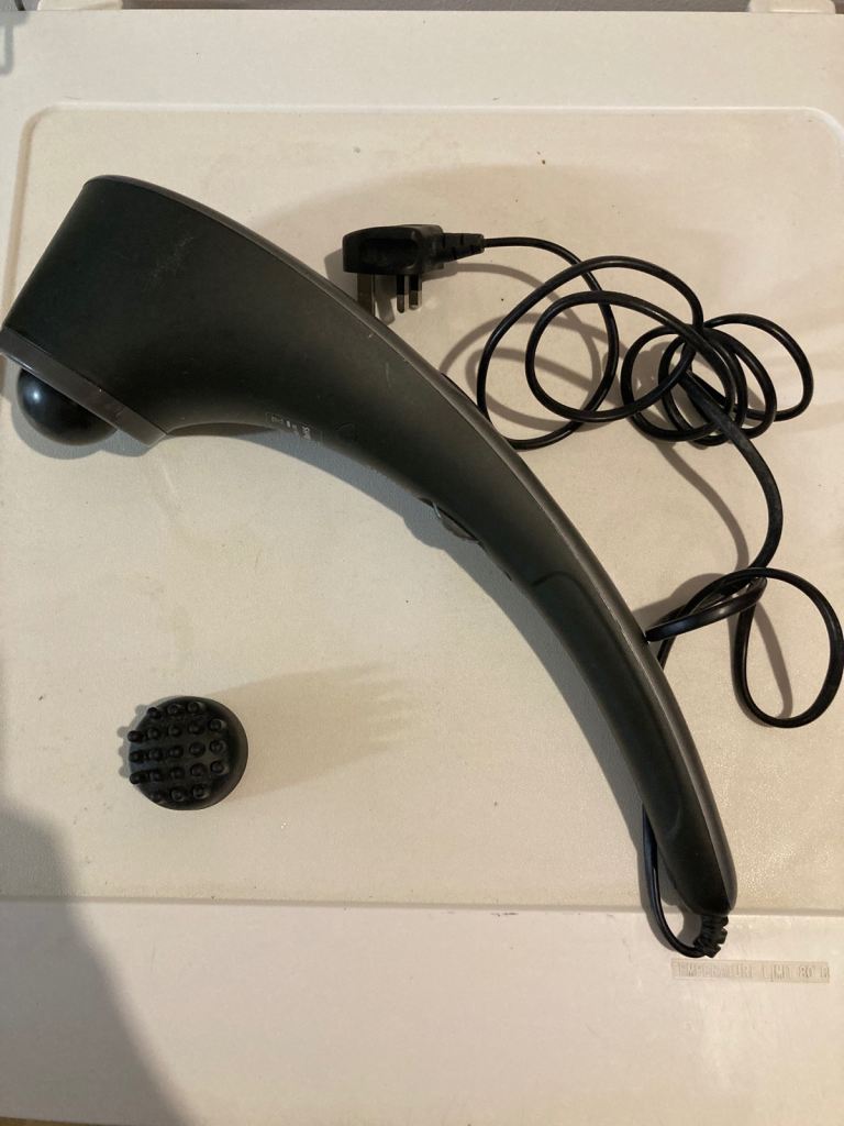 Hand held massager .Had used this for a while but invested in a massage gun.This is quite powerful and has a heat setting.two different heads.
