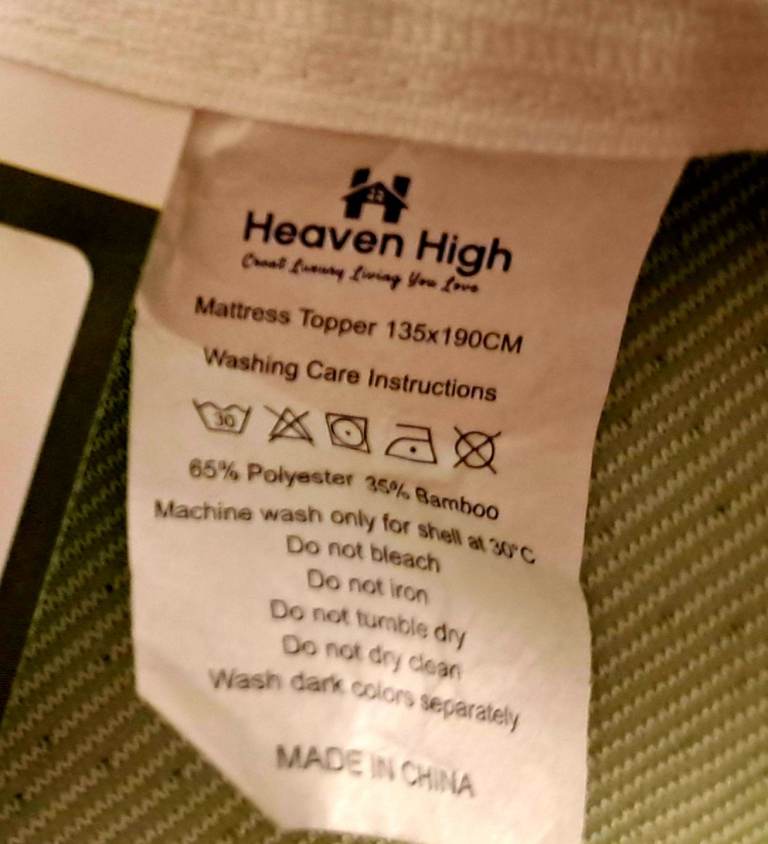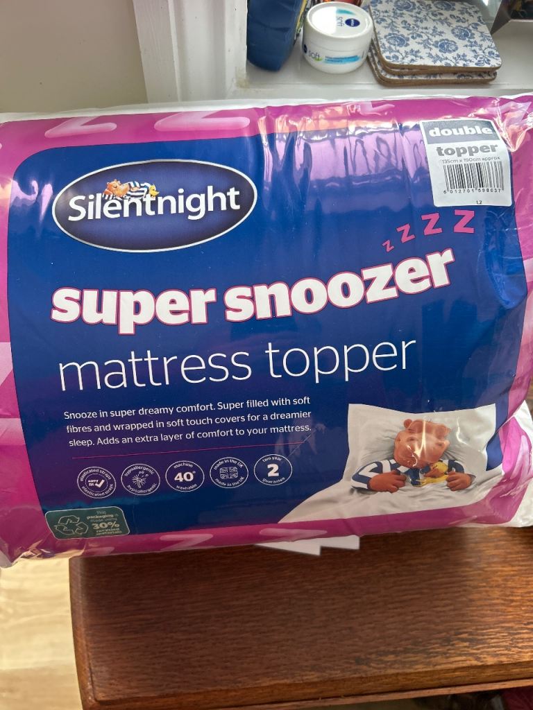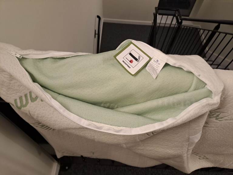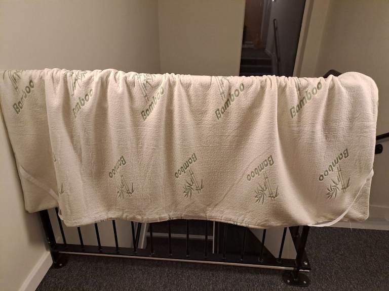 Cover for memory foam topper double size with straps and zip all the way around never used, cover is polyester and bamboo fabric, 135 x 190cm