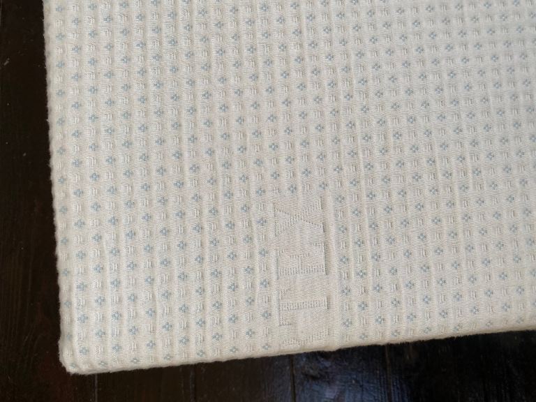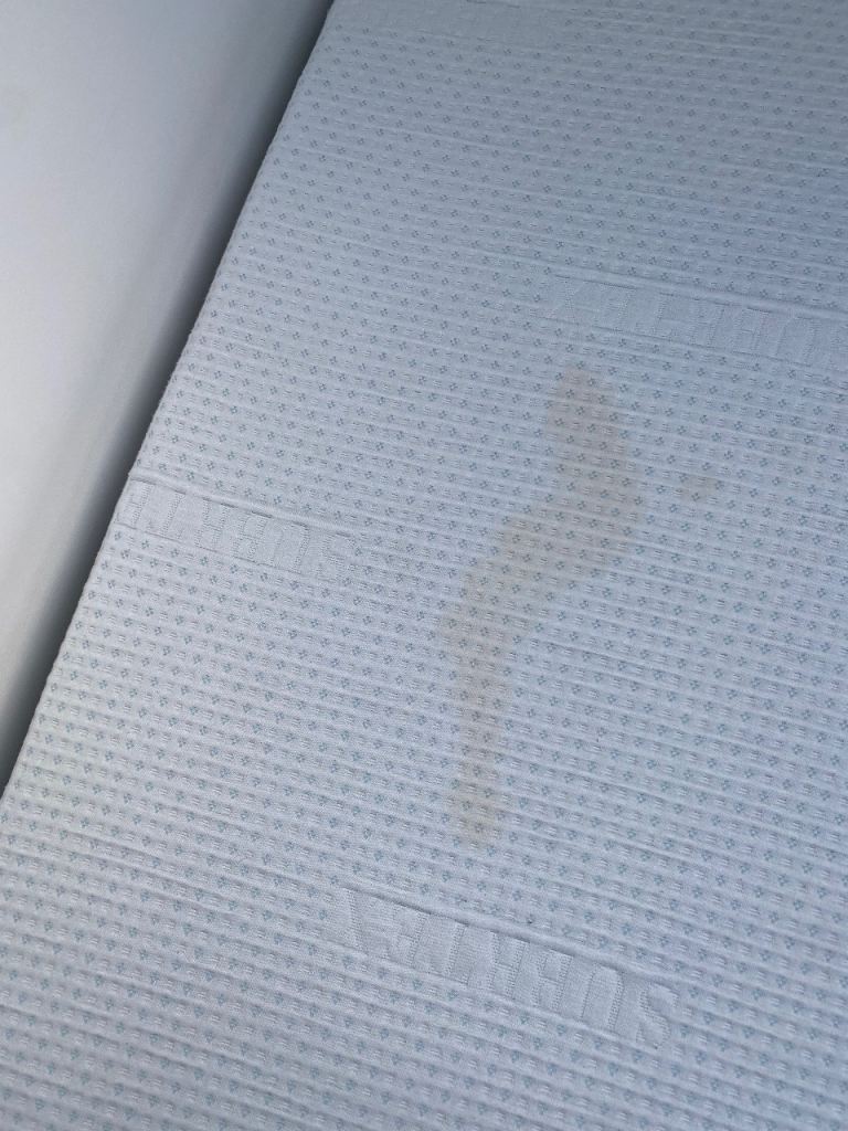 Bought this a year ago for the guest room, it was only used four or five times but of course managed to spill coffee on it! — as shown in the photograph. The cover is removable and can be washed, but clearly didn’t act quickly enough.