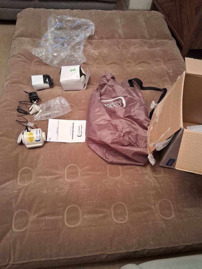 Aerobed air mattress boxed. flocked double size used for a weekend. All attachments.