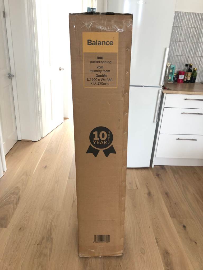 Selling a brand new, double (190 x 135 cm x 22cm) bed mattress, still rolled and in its unopened packaging.