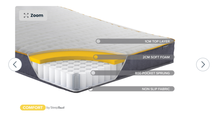 This UK double mattress is sold for £200 on Mattress online (SleepSoul-Comfort-800-Pocket-Mattress-P821)