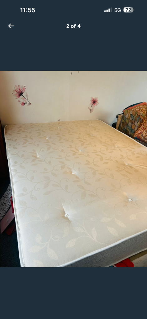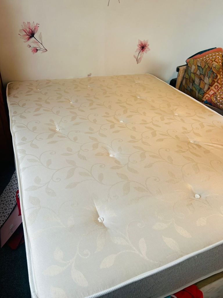 We bought Brand New king size Mattress.Used only 2 days,Its fully comfortable and memory form mattress but we got a newborn and want to buy Superking size bed-mattress. please contact/msg on whatsapp asap. Market price is £450