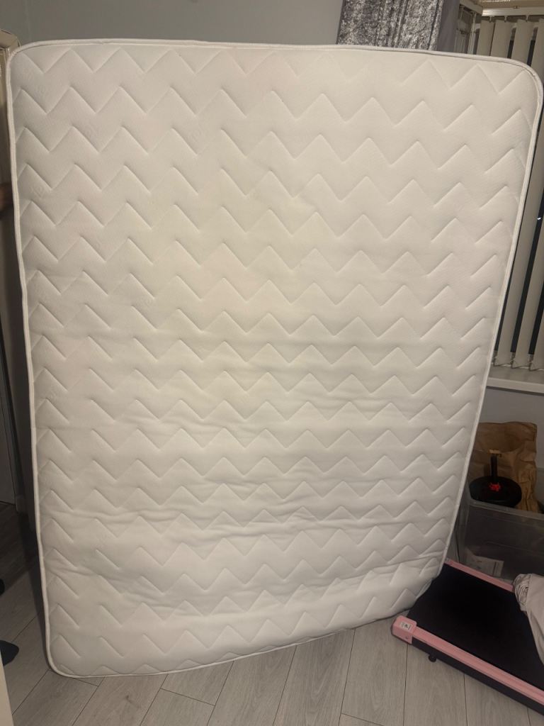 Hi im selling this Brand New factory sealed Quilted ortho spring comfy mattress with bs7177 safety label Turn able for longer life FREE delivery Great quality 4ft6 x 6ft3 in solft white fabric great value Comfy Mattress