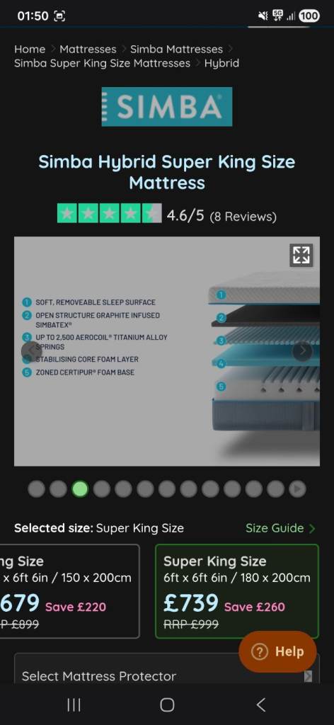 Posting for 1+ monthsCoolflex® Essentials Pocket Memory Hybrid double mattress with solid metal double bed frame