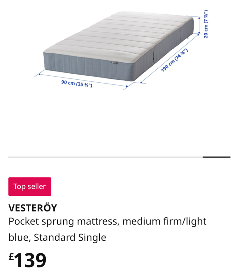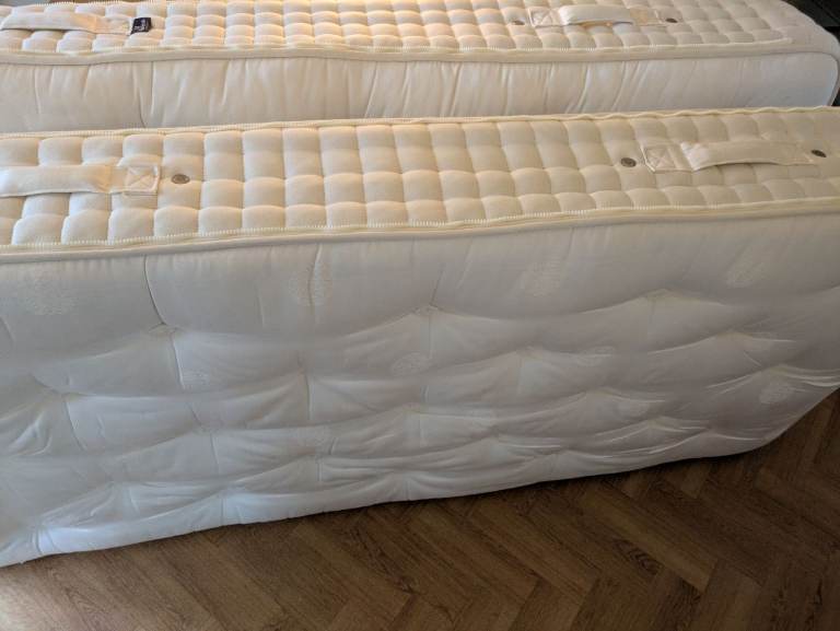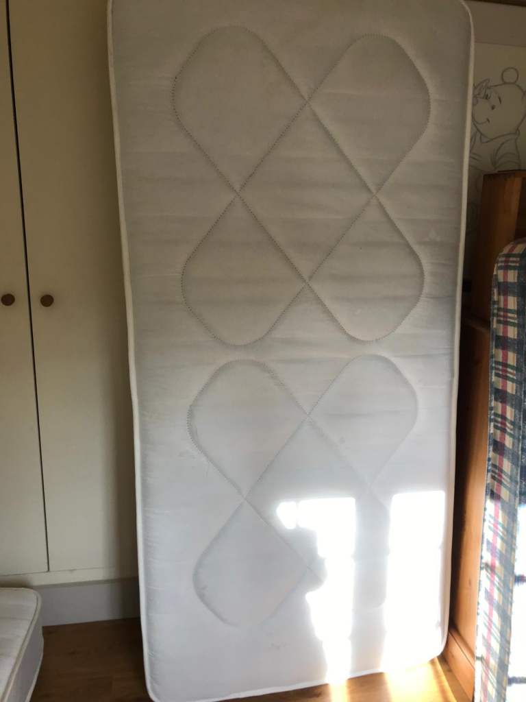 2 inches thick encased in 2 zipped protectors 67 in x 26 in used twice in caravan. Bargain. Immaculate