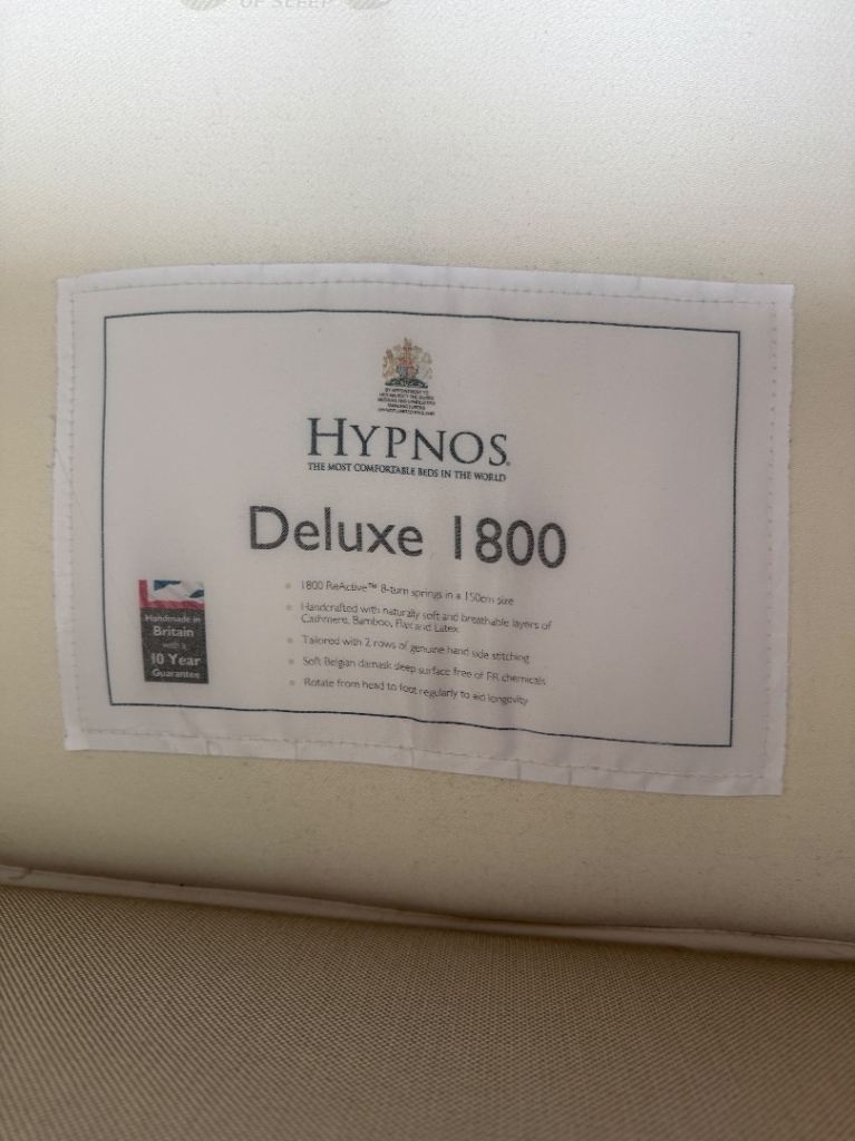 Premium Hypnos Deluxe 1800 pocket sprung Super King mattress, purchased from John Lewis in 2021.