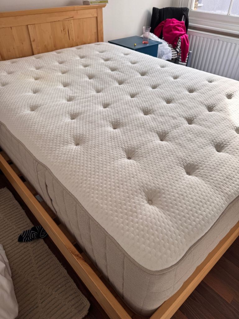 In excellent condition - small faint mark that can't be picked up by the camera. Ideal for keeping cool in as it has natural fibres and is pocket sprung.