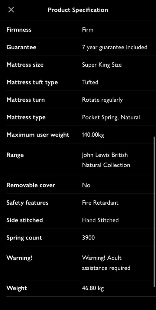John Lewis super king mattress firm - British natural collection 3250. Still on the John Lewis website with product code 80020525