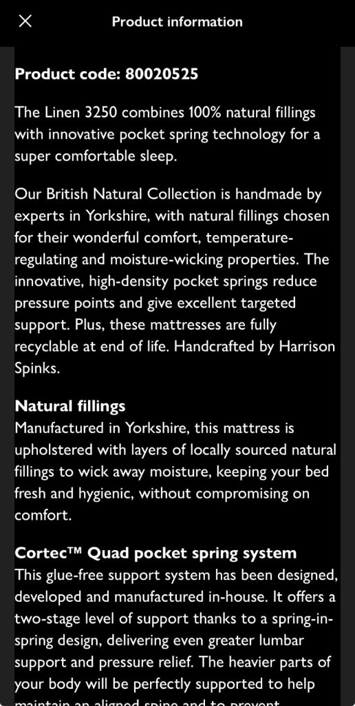Posting for under a monthJohn Lewis super king mattress ‘Linen 3250’ firm
