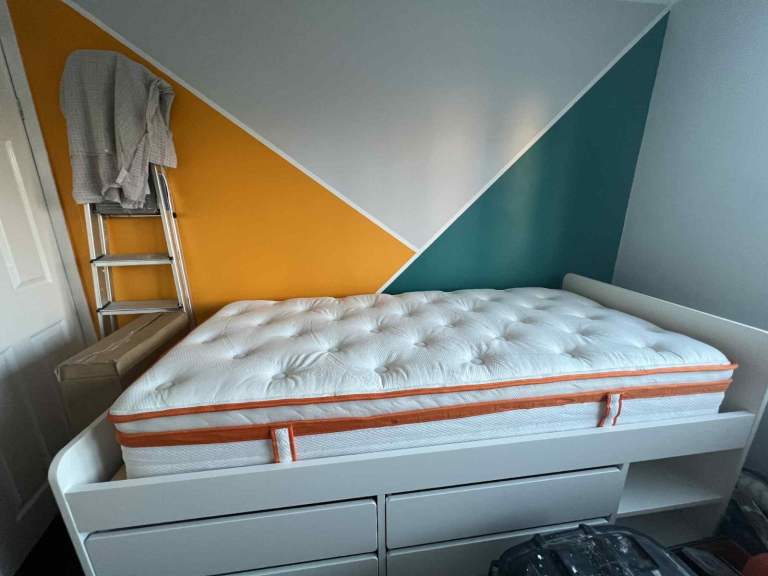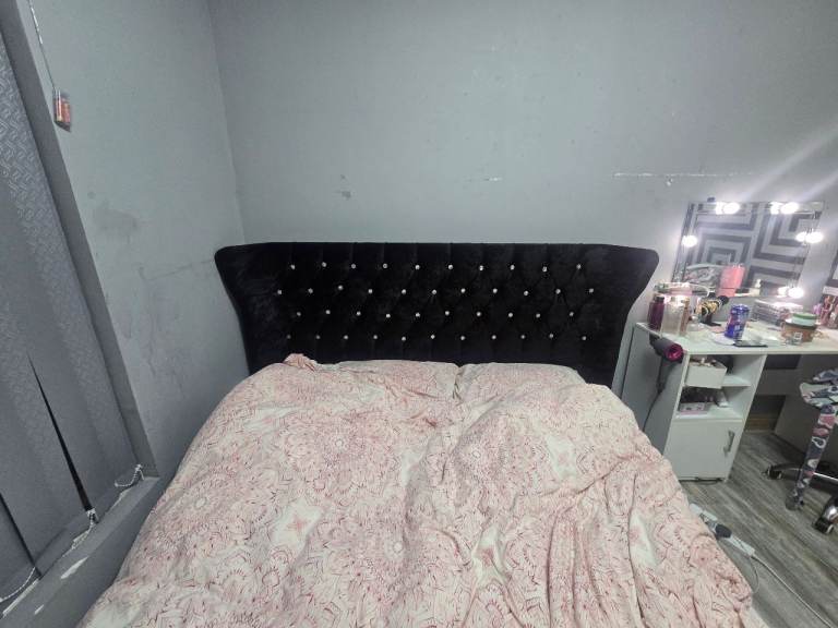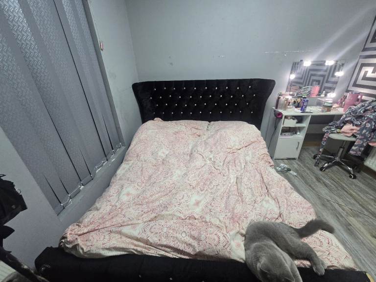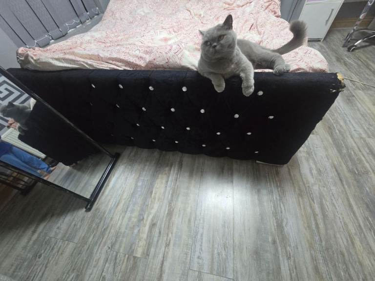 Theres is a slight tare on the velvert due to my cat scratching it but can easily be coverd the frame is solid and strong. 200 for the frame i also have a simba kingsize matress which cost me over 1200 3 years ago. Its in good condition i am also willing to throw that in as a set all together 430 or neariest offer thanks
