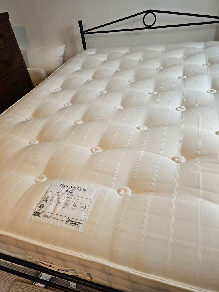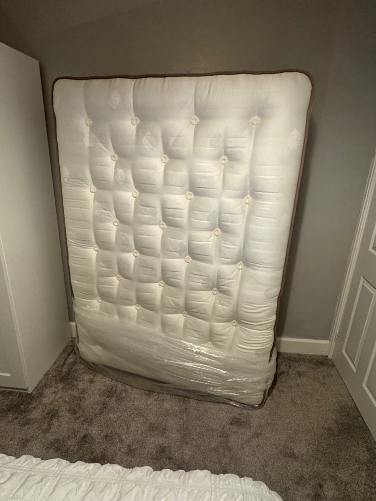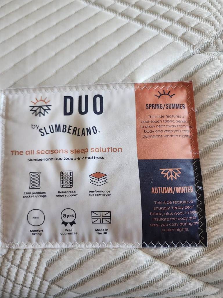 Bought in August, 10" thick, advertising on behalf of my parents, there is a warm side and a cool side. Very heavy they pensioners so you must lift and collect so need two people. No offers collect litchard Bridgend its from a bungalow. Its like new condition. Reason for sale its too high on there bed frame.